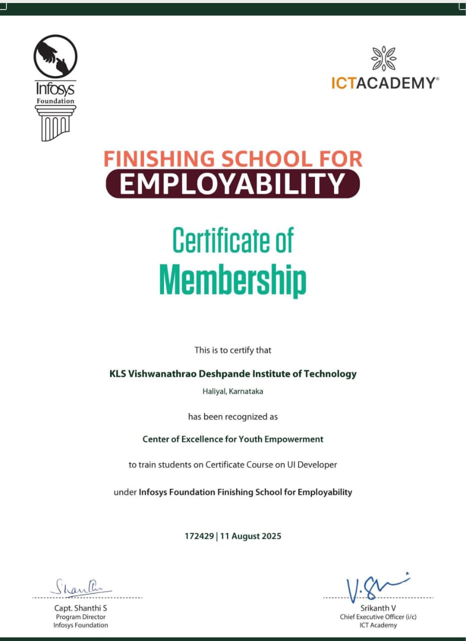 Certificate of Membership by Infosys Foundation Finishing School for Employability – 2025