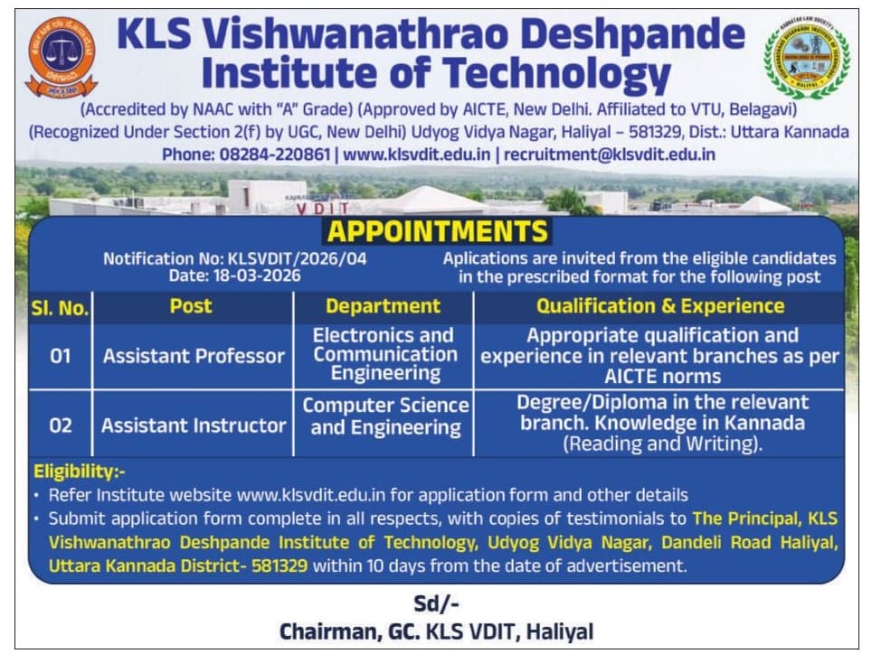 Recruitment for the post of Assistant Instructor in Electrical & Electronics Engineering